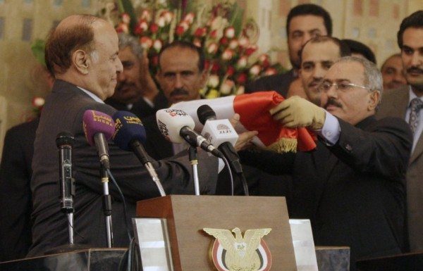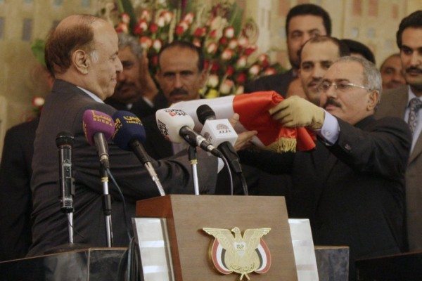 «Je mets la bannière de la révolution, de la liberté, de la sécurité et de la stabilité entre des mains sûres», a déclaré M. Saleh en s’adressant à son successeur à la fin d’une cérémonie au palais présidentiel de Sanaa.