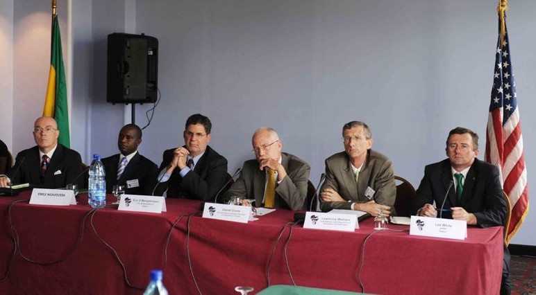 A cette conférence de presse étaient présents l’ambassadeur des Etats-Unis, au Gabon, Eric Benjaminson et d’autres participants.
