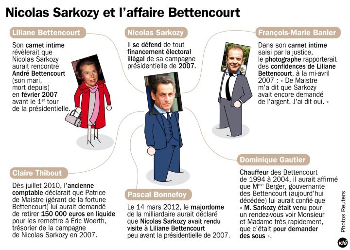 Les magistrats bordelais enquêtent sur la base de témoignages d’anciens employés ou de proches de la milliardaire affirmant notamment l’avoir vu chez les Bettencourt début 2007 pour demander de l’argent. L’avocat de Nicolas Sarkozy, Me Thierry Herzog, a pris les devants en envoyant le 15 juin «les extraits certifiés conformes de l’agenda de M. Nicolas Sarkozy pour l’année 2007». Ces documents démontrent selon lui «l’impossibilité absolue de prétendus « rendez-vous secrets » avec Mme Liliane Bettencourt».