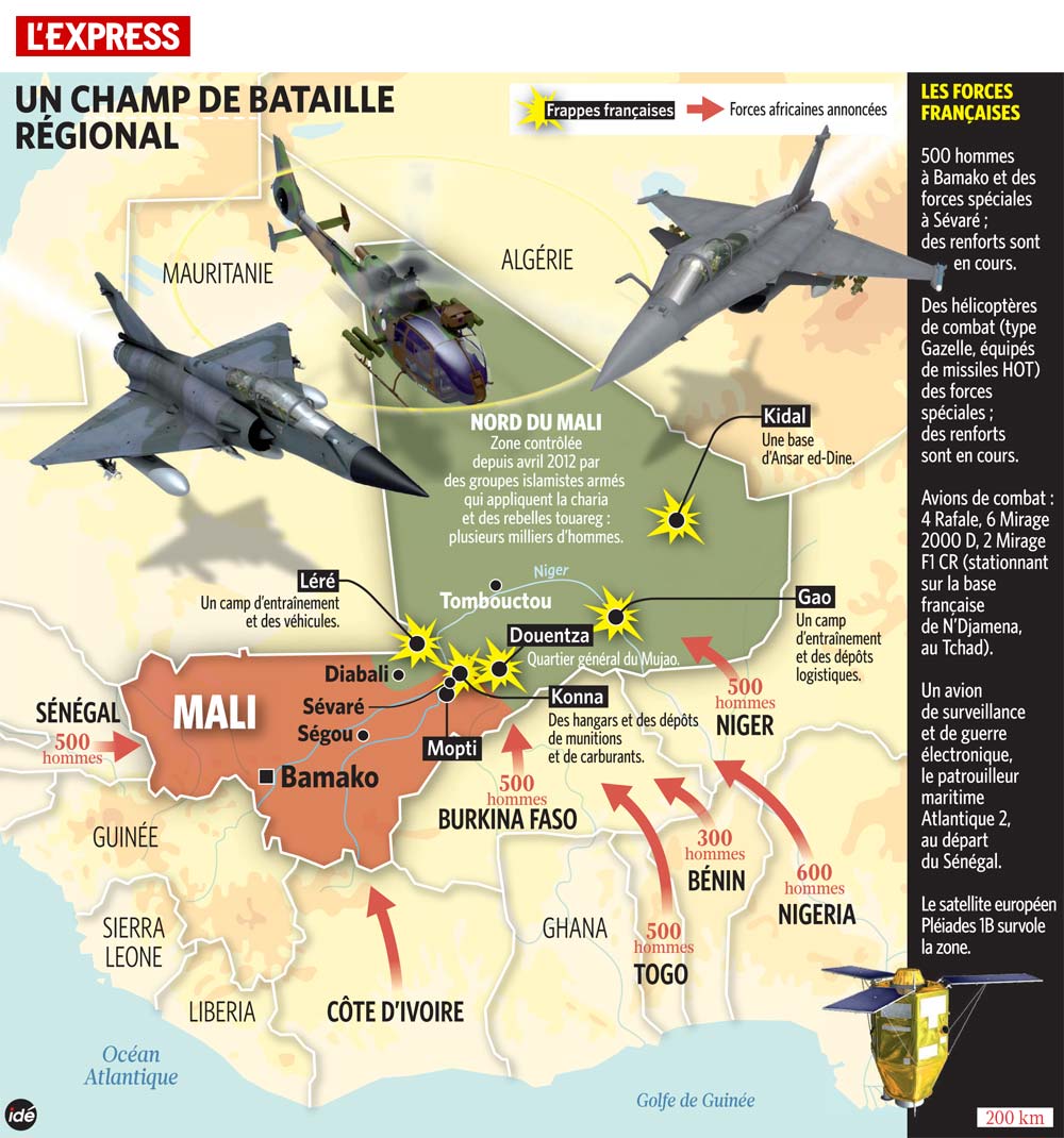 Dans le nord du Mali, contrôlé depuis neuf mois par les jihadistes, ceux-ci ont largement abandonné leurs fiefs. « Les moujahidines sont partis, ils ont vraiment peur », a noté un résident de Tombouctou. Mais pour le porte-parole du groupe islamiste Ansar Dine (Défenseurs de l’islam), Senda Ould Boumama, il ne s’agit que d’un « retrait tactique ».
