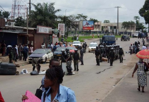 Après leur AG, ils ont envahi la route où ils ont promptement allumé des feux et empêché les voitures de passer. A cent mettre du carrefour Derrière la prison, les barricades composées de matériaux hétéroclites comme des bacs à ordures, de vieux pneus, des cailloux, des ordures ont été posées, ainsi qu’au carrefour de l’ancien centre de la Radiotélévision gabonaise (RTG).