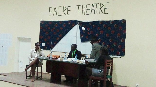 L’amphithéâtre du département des Lettres Modernes de l’UOB a servi, le samedi 1er juin, de scène à la compagnie Sacré Théâtre, créé au sein de cette université en 2007. Depuis six ans donc, la Compagnie, constituée pour l’essentiel d’étudiants, œuvre pour une sorte de conscientisation par le biais d’un style propre à l’enseignant et dramaturge Rodrigue Ndong, par ailleurs directeur et metteur en scène de cette compagnie.