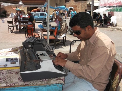 Malgré l’arrivée des ordinateurs à Rabat, la machine électronique n’a pas encore pris ses vacances au musée. Les écrivains publics qui en font usage au quotidien au marché central de la ville royale, ne peinent pas à écrire et résistent, bon l’an mal an, face à la présence massive des cybercafés ou de l’outil informatique. Le métier d’écrivain public qui se transmet de père en fils au royaume chérifien a encore des lendemains meilleurs devant lui. Ceux qui travaillent encore arrivent, malgré la crise qui sévit partout, à joindre les deux bouts.