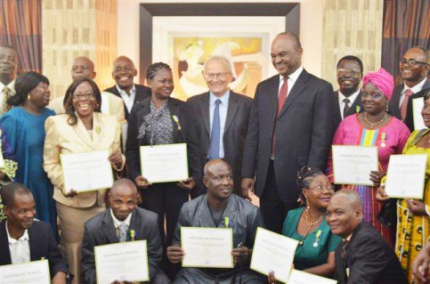 Les autorités diplomatiques de l’ambassade de France au Gabon ont, en présence d’une délégation du ministère de l’Economie, de l’Emploi et du Développement durable conduite par son secrétaire général, Jean Philippe Ndong Biyogho, procédé, le 10 juin 2013, à la remise de médailles du travail aux employés de droit local exerçant dans les différents services français au Gabon, conformément aux exigences du Code du travail en vigueur sur le territoire gabonais.