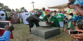 L’Archevêque de Libreville, Basile Mve Engone a posé, mardi à Libreville, la première pierre de la paroisse Marie Auxiliatrice d’Okala-Mikolongo d’une capacité d’accueil estimée à 1000 places avec bureaux et des salles destinées aux cérémonies.