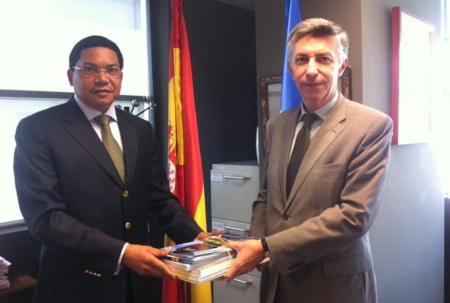 Au cours d’une rencontre de promotion des opportunités d’investissements au Gabon à Madrid (Espagne) avec les responsables espagnols dont le directeur général pour l’Afrique, le Maghreb, la Méditerranée et le Moyen-Orient, Manuel Gomez Acebo, l’ambassadeur Simon Wilfrid Ntoutoume Emane a mis à la disposition des operateurs économiques espagnols un ensemble de documents économiques sur les avancées significatives et les projets «ambitieux» en cours au Gabon.