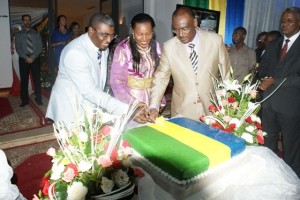 L’Ambassadeur Haut Représentant de la République Gabonaise, près le Royaume du Maroc, son épouse, et S.E.M. Ismaïla Nimaga, Ambassadeur de Centrafrique et Doyen du Corps Diplomatique au Maroc, ont eu par la suite, à découper le gâteau d’anniversaire de cette commémoration, sous les vivas de la foule .