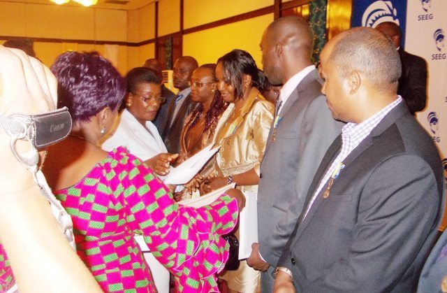 Ils étaient 220 agents SEEG, de la province de l’Estuaire, à avoir été décorés le 20 septembre 2013 par les distinctions de la médaille du travail et de celle de l’entreprise pour avoir rendu de bons et loyaux services, sans discontinuer, pendant 10, 20 et 30 ans.