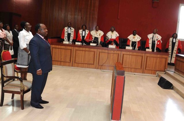 C’est Martin Akendengué, premier président du Conseil d’Etat, qui a présidé la cérémonie au Tribunal de Première instance de Libreville. En plus du Chef de l’Etat, étaient présents, entre autres, le Premier ministre, Raymond Ndong Sima et la Garde des Sceaux, Ida Retenot Assonouet.