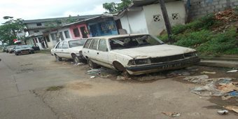 Les garages à ciel ouvert et le épaves de voitures stationnées aux abords des rares routes de la ville d’Oyem, notamment dans les célèbres quartiers d’Akouakam, Adjougou, Koweït, mont-Miyelé, en passant par tougou-tougou, Eyenassi, et autres rues du centre-ville, exaspérant les passants et les autres usagers de la voie publique.