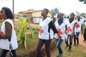 des volontaires de la Croix Rouge centrafricaineMme Bongo Ondimba a saisi cette opportunité pour apporter une contribution volontaire aux opérations d’assistance conduites par la Croix-Rouge centrafricaine auprès des populations, plus particulièrement aux femmes et aux enfants, victimes du conflit. Cela, en sa qualité de Présidente d’honneur de la Croix Rouge gabonaise. Elle était accompagnée de M. Guy Patrick OBIANG, Président en exercice de la Croix Rouge gabonaise.