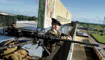 Un militaire à l’aéroport international de Bangui. Un militaire à l’aéroport international de Bangui. © Sylvain Cherkaoui pour J.A.