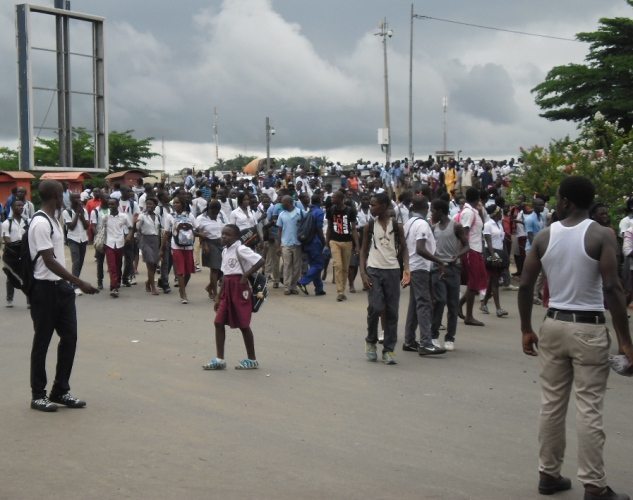 Ces élèves ont emprunté la voie secondaire du quartier venez voir pour poursuivre la marche sans arrivé à l’objectif visé. Ces marcheurs ont été rejoints par leurs condisciples du lycée Djoué Dabany et du lycée de Nzeng Ayong.