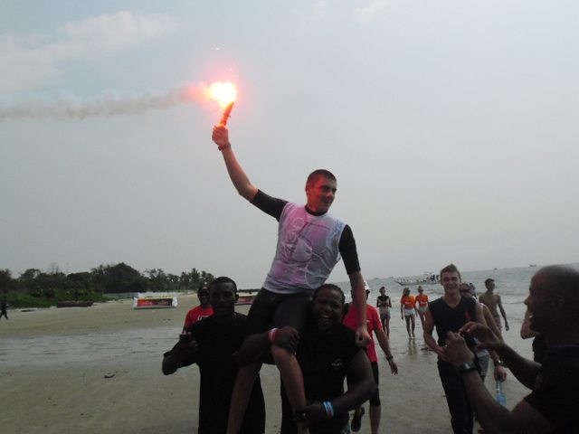 champion-jet-ski.3La 1ère édition de la Course de Jet-ski, sponsorisée par la boisson énergisante XXL, a été riche en images et en émotions pour les nombreux spectateurs sur la plage du Lycée national Léon Mba de Libreville ce dimanche 22 décembre. Le jeune Thibaut Laissi, de l’équipe Nitro Jets, n’a pas laissé la moindre chance à ses 21 concurrents : il est arrivé 1er en plaquant ses challengers sur une vitesse de 100 Km/h.