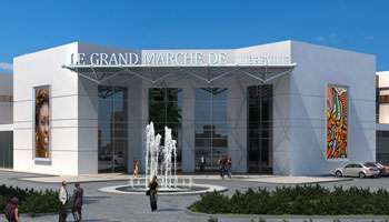 Commencé fin novembre dans les jardins de la Peyrie, en plein centre-ville, son chantier se situe à quelques mètres de l’actuel marché central de Mont-Bouët. Conçu par le cabinet dubaïote Agora Engineering and Development, le complexe doit être livré en décembre 2015, pour une ouverture prévue au premier trimestre 2016. L’État a confié son exploitation, dans le cadre d’un contrat de concession de cinquante ans, au groupe suisse Webcore, qui assure également sa construction et son financement, pour un coût de 27 milliards de F CFA (plus de 41 millions d’euros).