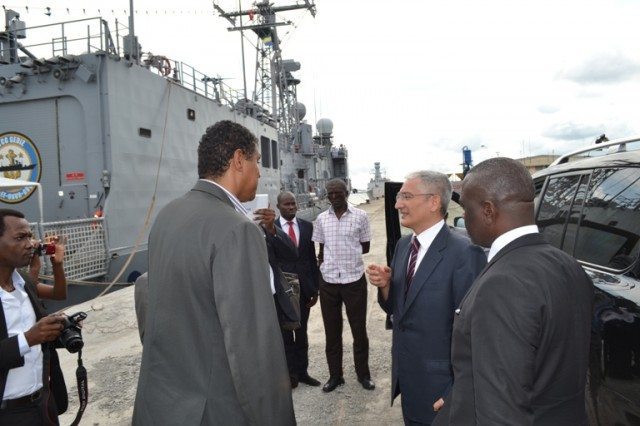 Accostés au port d’Owendo de Libreville, le lundi 21 avril 2014, deux des quatre navires de guerre du groupe naval turc ont été visités par l’ambassadeur de Turquie au Gabon, Ahmet Riza Demirer. Chargés d’agir dans le cadre de multiples interventions, la présence de ces bâtiments à Libreville vise le renforcement de la coopération bilatérale entre le Gabon et la Turquie.