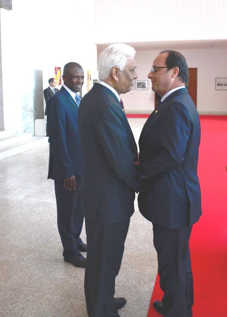 Le Premier ministre de Maurice, Navin Ramgoolam, et Jean Claude de l’Estrac ont tous deux eu l’occasion de s’entretenir en privé avec le président de la République Française.