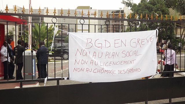 À l’issue d’un préavis de grève resté lettre morte, arborant tous un tissu de couleur rouge sur le front ou sous forme de brassard pour traduire la souffrance et colère qui les rongent, les agents de la Banque gabonaise de développement (BGD) sont unanimement rentrés en grève illimitée le 12 janvier dernier. Le personnel de la BGD déplore la stratégie de management de l’ADG, Roger Owono Mba. Au lieu de se résoudre à assumer ses responsabilités telles qu’elles lui ont été prescrite à sa nomination, notamment le «redressement de la structure», à travers la réduction des dépenses et des charges, le patron de la banque se serait plutôt attelé à autre chose qui ruine les chances de l’entreprise. «Le constat que nous faisons est qu’au lieu de relever la structure, on la couche au contraire. Nous sommes arrivés à un stade où parfois, vous ne pouvez même pas toucher un chèque de 5000 francs à la caisse», a indiqué la secrétaire générale adjointe du syndicat des agents de la BGD, Margueritte Loba Lendoye.