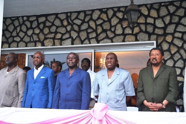 Une vue des leaders du Front de l’opposition pour l’alternance, le 27 janvier 2015 à Libreville. © GabonreviewLe Front uni de l’opposition pour l’alternance (Fuopa) avait annoncé une marche en direction du Sénat, de l’Assemblée Nationale et de la Primature prévue pour le jeudi 29 janvier, dans le but de saisir la Haute Cour de justice sur la filiation du chef de l’Etat. Cette marche a été reportée à cause de la rentrée solennelle de la Cour constitutionnelle. Une excuse peu crédible au regard des appels au non respect des institutions maintes fois clamés par ces leaders du Front uni.