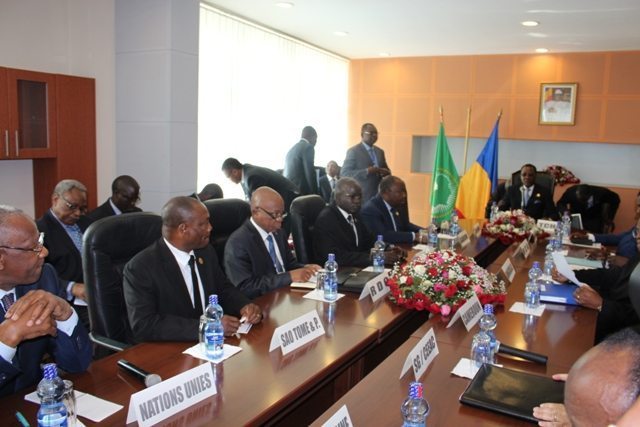 reunion_ad-hoc_uaEn marge du 24ème sommet de l’Union Africaine qui se tient actuellement à Addis Abeba, les chefs d’états du Gabon, Tchad, Congo, Guinée Equatoriale et des représentants de l’Angola, du Cameroun, Sao Tomé et de la République Centrafricaine se sont réunis aujourd’hui pour discuter de problèmes majeurs de la région.