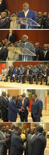 « Léon Mba et Omar Bongo Ondimba n’ont jamais été fermés au dialogue, bien au contraire. Mais ils n’ont jamais dialogué au mépris des lois du pays, ni des institutions. Comme mes illustres prédécesseurs, je suis et je resterai toujours un homme de dialogue et d’ouverture. Nul ne peut le contester car, chaque fois que l’intérêt supérieur de la Nation l’a exigé, j’ai toujours réuni les gabonaises et les gabonais en vue de recueillir leurs avis », a affirmé Le chef de l’Etat.