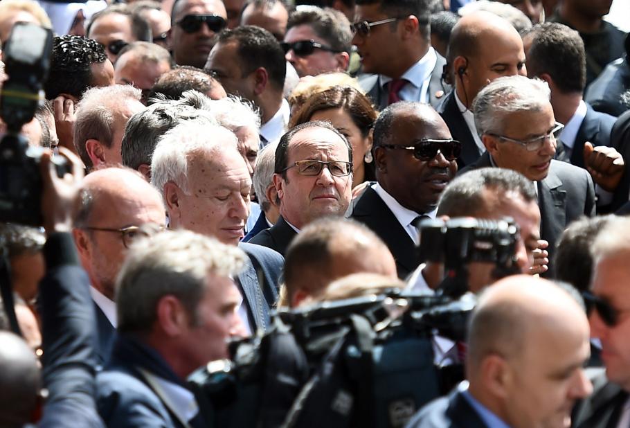 Le numéro un tunisien, initiateur de la marche, était accompagné, place Bab Saadoun de Tunis, par ses homologues gabonais, Ali Bongo Ondimba, français, François Hollande et palestinien Mahmoud Abba, sans oublier les chefs des gouvernements algérien Abdelmalek Sallal et italien Matteo Renzi.