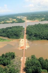 Neuf mois presque jour pour jour après l’inauguration par Ali Bongo Ondimba du projet routier le plus ambitieux du pays, retour au terrain pour mesurer le travail de titan accompli par les pionniers chinois et gabonais : partis d’Ozouri, où le Chef de l’État s’était rendu le 3 juillet dernier, les bâtisseurs armés de gros moyens mécaniques tracent dans un paysage de savanes inondées, par-delà les cours d’eau, un sillon appelé à devenir la route qui reliera « l’île Mandji » au continent.