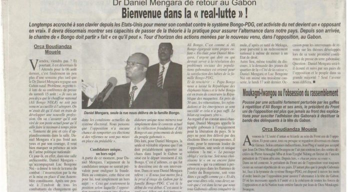 Longtemps accroché à son clavier depuis les Etats-Unis pour mener son combat contre le système Bongo-PDG, cet activiste du net devient un « opposant en vrai ». Il devra maintenant montrer ses capacités de passer de la théorie à la pratique pour assurer l’alternance dans notre pays.