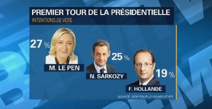 Le chef de l’État perd toujours du terrain face à la droite. Nicolas Sarkozy ou Alain Juppé, peu importe: quel que soit son adversaire, François Hollande n’obtiendrait pas plus de 19% des intentions de vote. Un véritable boulevard pour l’extrême-droite, qui verrait dans tous les cas sa candidate Marine Le Pen en tête du premier tour. Un coup dur pour le Parti socialiste, analyse pour Le Figaro Jérôme Fourquet, directeur du pôle opinion de l’Ifop. « Aujourd’hui, le camp hollandais n’a plus qu’à essayer par tous les moyens de se qualifier au second tour. Et dans cette stratégie, les candidatures qui à gauche sont susceptibles de venir grappiller des voix au PS sont perçues comme un danger mortel. »
