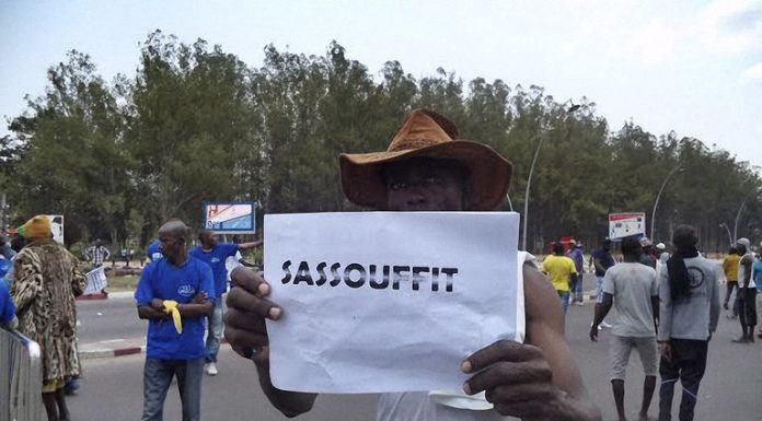 « Sassoufit », « Le Congo n’est pas une propriété des Nguesso », « Non au coup d’Etat constitutionnel »… Inscrits au stylo, à la craie ou tout simplement au charbon sur les pancartes des manifestants, les slogans hostiles au président congolais ont fleuri, dimanche 27 septembre, dans les rues saturées de chaleur de Brazzaville.