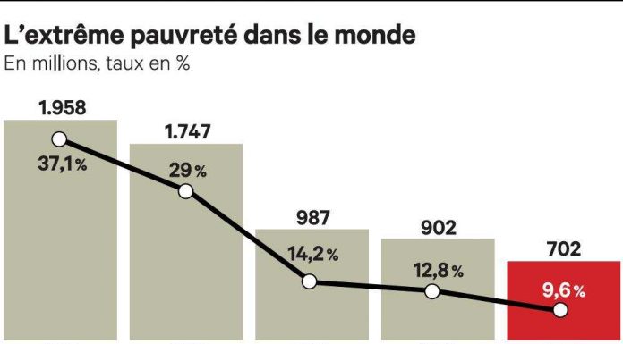 Le nombre de personnes vivant dans l’extrême pauvreté passerait de 902 millions en 2012 à 702 millions cette année.
