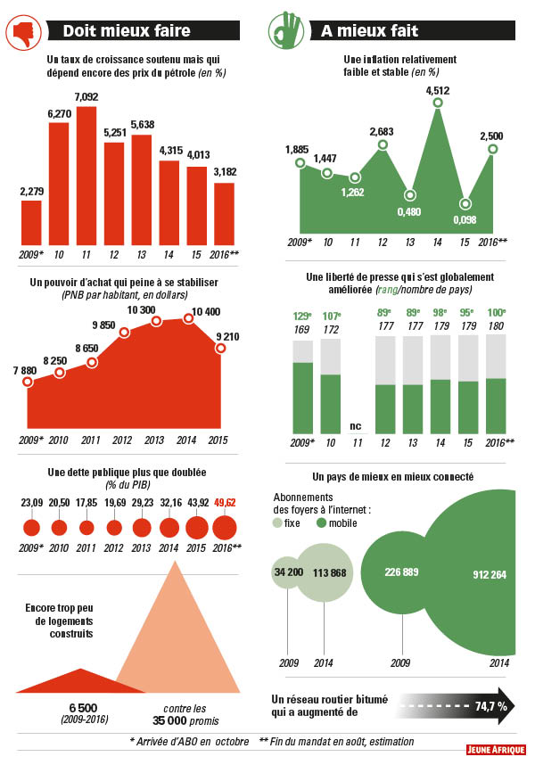 Lors du dernier septennat, cette politique de diversification a montré des effets encourageants. Entre 2010 et 2015, à l’échelle nationale, les investissements du secteur hors pétrole ont atteint une moyenne annuelle de 707 milliards de F CFA, une progression qui traduit la diversification progressive de l’économie. L’investissement direct étranger, lui, est passé de 3,5 % du PIB en 2010 à 7,6 % en 2015. Le Gabon fait ainsi largement mieux que la Côte d’Ivoire ou le Sénégal. Ce résultat suffira-t-il à convaincre les Gabonais de miser sur un second mandat ?