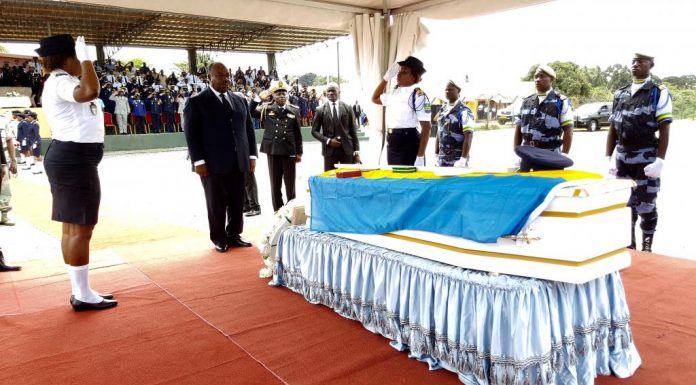 Une cérémonie a eu lieu ce mardi matin à Libreville pour rendre hommage au policier tué pendant les violences postélectorales. Il avait reçu une balle dans la ville d’Oyem au nord du pays, lors d’une opération de sécurisation et est décédé des suites de ses blessures le 13 septembre dernier dans un hôpital de Libreville.