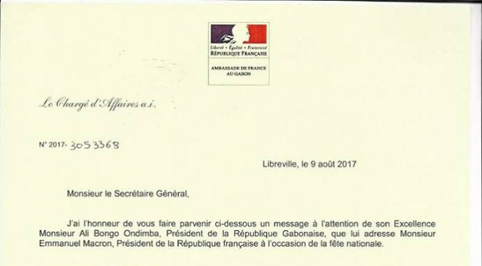 Le 9 août, à quelques jours de la fête nationale gabonaise, la direction de la communication présidentielle du Gabon diffusait un courrier transmis par les services de l’ambassade de France. Le post était estampillé « Urgent », car le message était signé Emmanuel Macron et s’adressait à Ali Bongo Ondimba en commençant par « Monsieur le Président ».